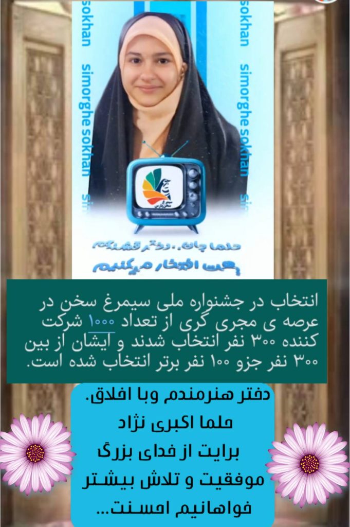 برگزیده جشنواره ملی سیمرغ سخن فرزند گلبن محبت