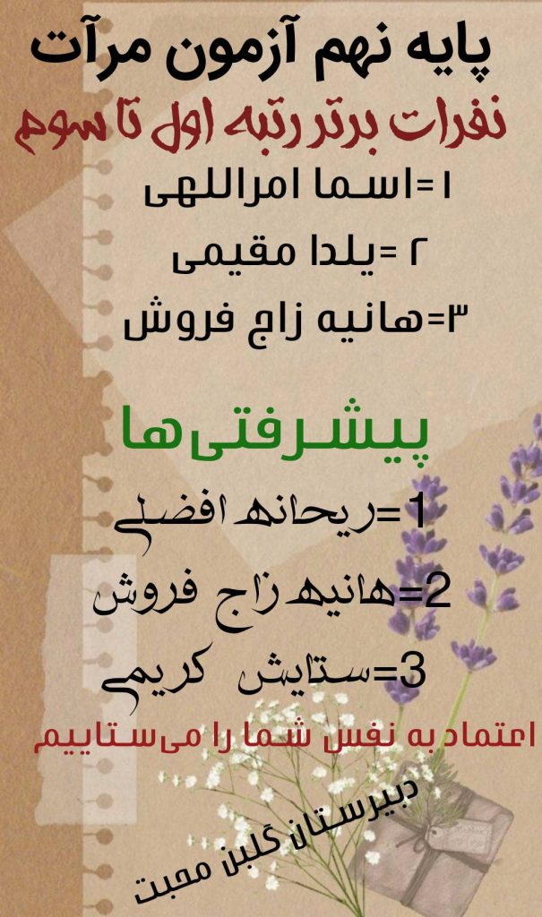 مجموعهی گلبن محبت از تمامی دانشآموزان پرتلاش خود که با جدیت در این مسیر گام برمیدارند قدردانی میکند و امیدوار است نتایج این آزمونها زمینهساز موفقیتهای بزرگتر آنان در آینده باشد
