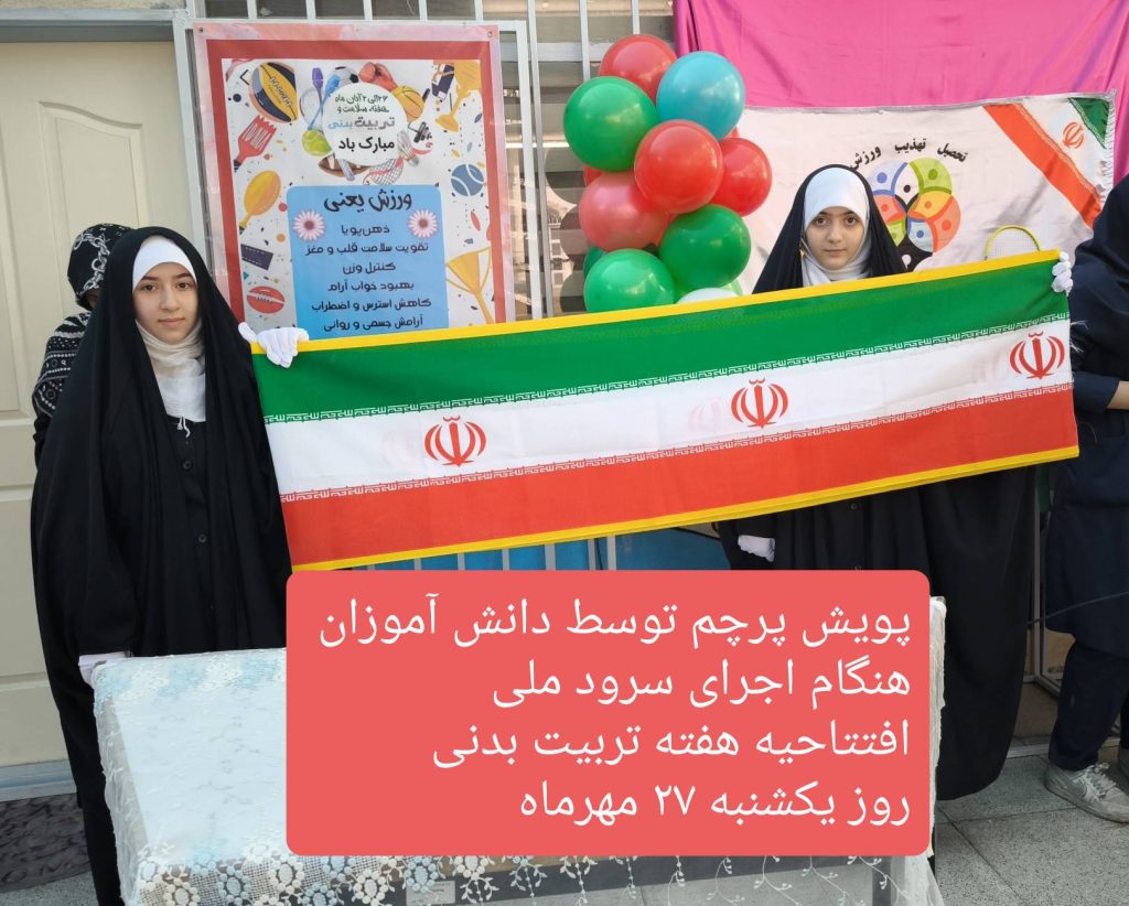 همزمان با آغاز هفته تربیت بدنی و ورزش، مراسمی باشکوه با حضور دانشآموزان، معلمان و مسئولان مدرسه برگزار شد. آغاز این برنامه با اجرای پرشور پویش پرچم و همخوانی سرود ملی جمهوری اسلامی ایران همراه بود که جلوهای از وحدت، عشق به میهن و نشاط دانشآموزی را به نمایش گذاشت.