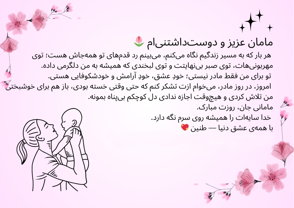 کارت‌پستال روز مادر – از طرف طنین مولایی